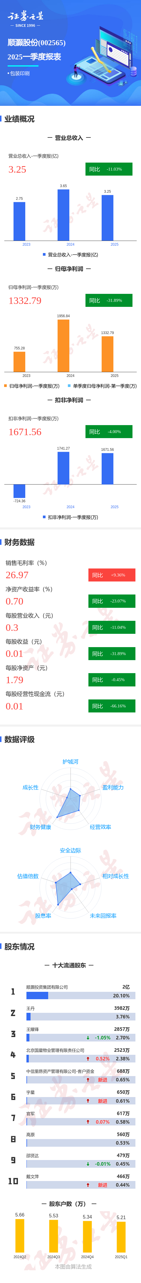 图解顺灏股份一季报: 第一季度单季净利润同比减31.89%